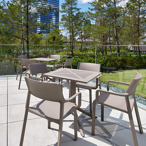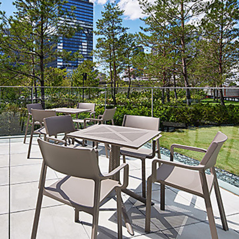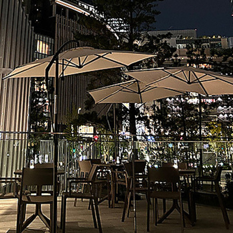 緑あふれる開放的なテラス席。天気の良い日は、心地よい風を感じながら、都心にいることを忘れてリフレッシュできます。ランチ後のコーヒーや、午後の休憩に最適です♪