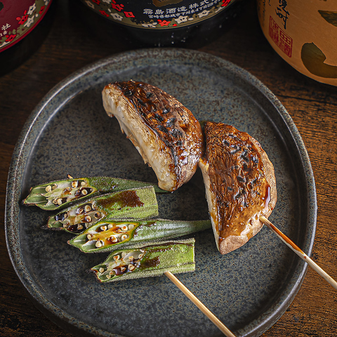 定番串からおくらやしいたけなどの野菜串まで種類豊富!彩り豊かでバランス良く楽しめる串焼きが勢ぞろい!
