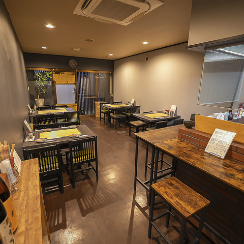 お一人様でも気軽に立ち寄れるカウンター席は4卓。目の前で焼き上がる串を眺めながら、店主との会話も楽しめる特等席♪仕事帰りの一杯や、ちょい飲みにもぴったりの落ち着いた雰囲気です。