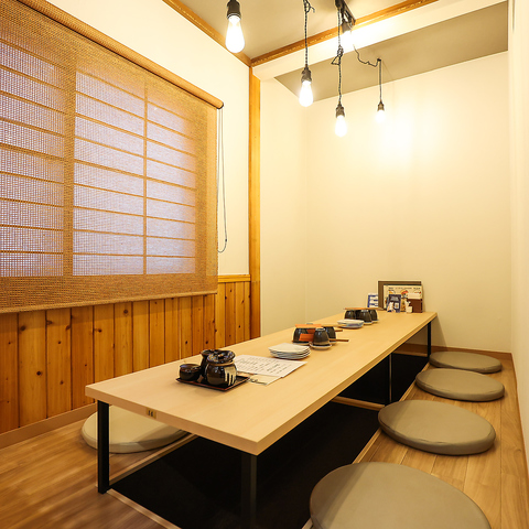 温かい雰囲気の中で、ゆったりとくつろげる空間をご用意しています◎足元を気にせずリラックスできる掘りごたつ席を4名様×3卓、座敷席を4名様×2卓設けております。木目調を基調とした内観が、心安らぐひとときを演出いたします♪少人数でのご利用はもちろん、ちょっとしたグループでの食事にも最適な空間です。