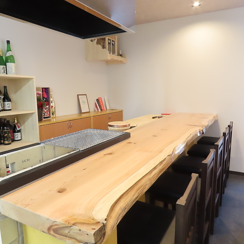 【職人の技を味わう特等席カウンター】目の前で繰り広げられる職人の手さばきや、香りを五感で楽しめるカウンター席。ライブ感はここならではです。お一人様で静かに味わいたい方はもちろん、店主との会話を楽しみたい方にもぴったり。肩肘張らず過ごせる心地よさがあり、初めての方でも気軽にお使いいただけます。