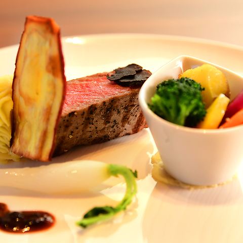 【セゾンコース】国産牛ロース肉グリエ薩摩芋のモンブラン仕立て トリュフソース