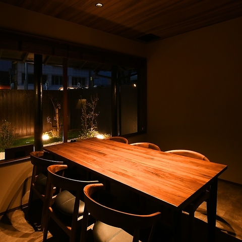 庭景色がそっと心をほどく、開放感あふれる個室。食の時間に彩りを添えます。大切なお集まりにふさわしい上質な個室。最大12名様までご利用可能。洗練されたモダンな空間で、贅沢なひとときを。