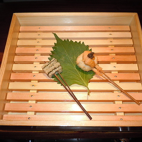 当店では、串揚げの概念を覆すような贅沢な食材もご提供しております。極上黒毛和牛ヘレ肉や海老の極み、フォアグラなど、厳選された高品質な食材を惜しみなく使用。シンプルな串揚げとして仕上げるからこそ、素材の良さが際立ちます。記憶に残る至福の一串をご体験ください。
