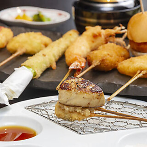 特別な日を彩るディナーの定番コースです。マグロ・フォアグラ串・生ウニといった豪華食材を贅沢に使った串揚げ15本セットプラン。旬の素材を活かした創作串は、まさに五感で楽しむ料理です。ワインや日本酒と合わせてご堪能ください。大切な方とのお食事、接待、記念日など、幅広いシーンにご利用いただけます!