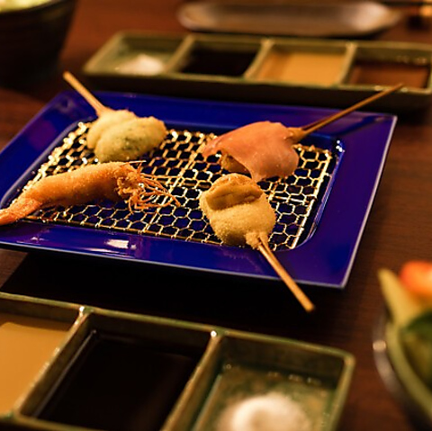 厳選された素材を使用し、それぞれの特性を最大限に引き出すための調理法を採用しています。素材の旨味を引き出すための細やかな配慮し、一口ごとに満足感を感じること間違いなし。そんな上質な素材の味を最大限に引き出した串揚げは、まさに極上の味。ミシュランを獲った北新地のクオリティを、梅田にてリーズナブルにご堪能ください。