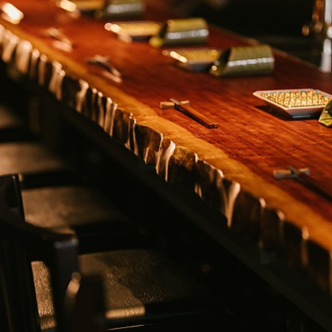 研鑽された職人の技を目の前でご堪能いただける、全17席のカウンター席をご用意しております。和作りの温かみを感じる洗練された空間は、五感で楽しむ贅沢なひとときに最適◎揚げたての串揚げと共に、ソムリエが厳選したワインを味わう至福のマリアージュをお楽しみください。デートや大切な方との語らいの場としてぜひご利用ください。