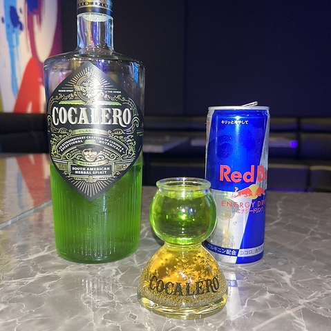 鮮やかなグリーンが目を引くコカレロをレッドブルで割ったコカボムは、活気あふれるシーンにぴったりの一杯です◎親しい方々とワイワイ楽しむパーティーシーンには欠かせません。スナック盛りやナッツなどもご用意しております。