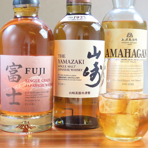 いい料理にはいいお酒を。焼酎、日本酒、ウイスキーまで数多く取り揃えております。