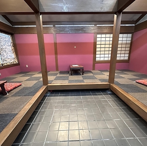 【座敷】お子様連れのご家族や、団体様利用に最適な座敷席を10席ご用意しております。靴を脱いでリラックスできる空間で、心置きなくお食事を楽しめます。ゆとりのある作りで、3世代での食事や親戚の集まりにも最適です。最大80名様までの大規模貸切利用も!歓送迎会や忘年会新年会、大人数での特別な催しに最適です。