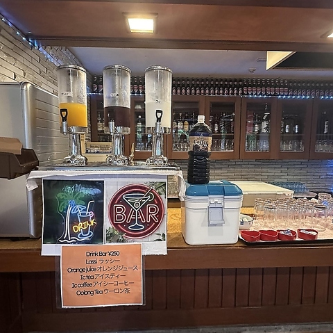 オレンジやラッシー、アイスティー、ウーロン茶が楽しめるドリンクバーを完備しています。セットメニューと合わせて、お食事中にいつでもお好みのドリンクを堪能できます。