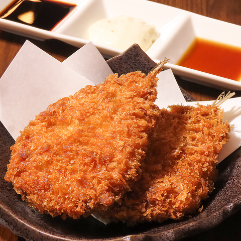この横丁で一番デカいアジフライが2枚も食べられるボリューム重視の定食/プレミアムになるとご飯がミニ海鮮丼にグレードアップ!
