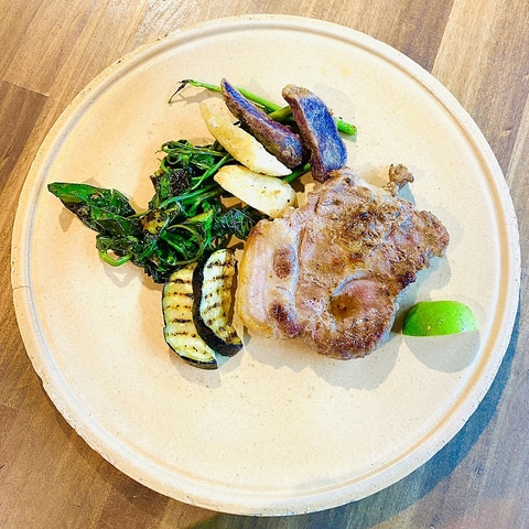 竹炭の黒い生地は、外はカリッと中は驚くほどモチモチ。新鮮な旬野菜をたっぷりと乗せ、素材本来の甘みと旨味を凝縮させました★見た目のインパクトと裏腹な優しい味わいは、主役にぴったりな一皿です。