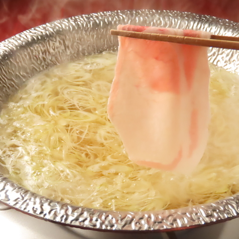 こだわりの黄金出汁にくぐらせることで、旬野菜本来の甘みと旨みが一層引き立ちます。瑞々しい食感と出汁のやさしい香りを楽しめる、肉とともに味わっていただけます。定番のお野菜を初め、その季節ならではの旬のお野菜をご用意♪お客様のだけの唯一のしゃぶしゃぶをお楽しみください。