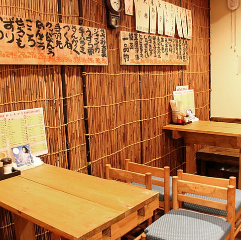 木の温もりを感じる落ち着いたテーブル席は気心知れたご友人や同僚との飲み会に最適◎アットホームな雰囲気の中で、自慢の鶏料理や創作メニューを囲めば、自然と会話も弾みます♪肩肘張らずにリラックスして過ごせる空間なので、ついつい長居してしまうことも。美味しいお酒とともに、楽しいひとときをお楽しみください。