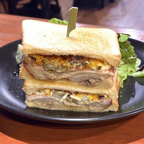 グリルでじっくり焼き上げたチキンを使用したジューシーなサンドイッチです。外はパリッと香ばしく、中は肉汁たっぷりのやわらかさ。濃厚なチーズとピリッと辛いハラペーニョがアクセントとなり、味に深みをプラス。自家製タルタルソースで仕上げることで、まろやかさと爽やかな酸味が絶妙に絡み合います。ボリューム満点なチキンサンドです。