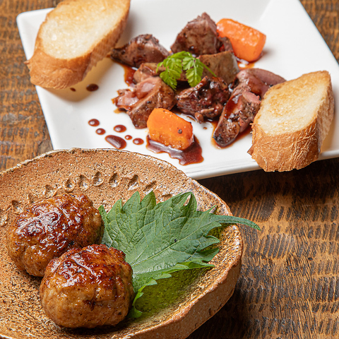 ご来店いただいたならぜひ味わっていただきたい、当店の「名物」をご紹介します。特にレバテキは、レバーを絶妙な火入れでレアに焼き上げ、自家製の特製ソースをたっぷりかけてご提供◎また、網焼きつくねは炭火で焼き上げることで香ばしさが加わり、濃厚な旨みがあふれます。