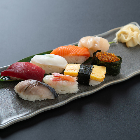・ほたて・サーモン・たこ・まぐろ・とびっこ・たまご・甘えび・〆さば