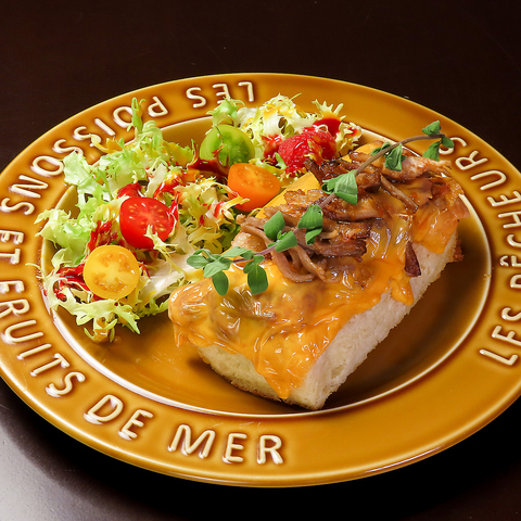北海道小麦天然酵母パンにホロホロ銘柄ポークとグラスフェッドチーズを乗せた一皿