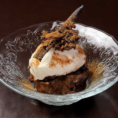 アップルビネガーとバニラビーンズで香り付けした焼き林檎