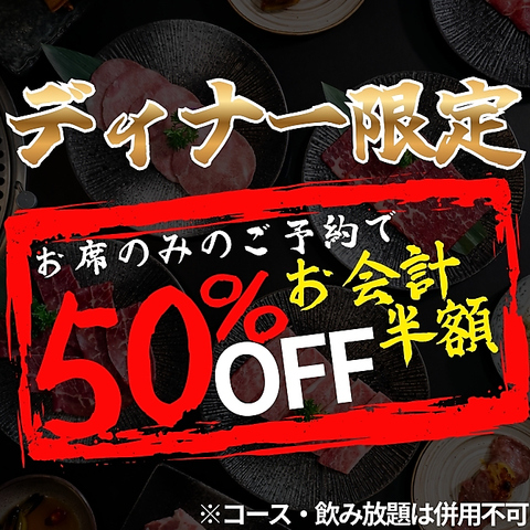 ディナータイム限定で席のみ予約のお客様は、お会計が半額になるお得なクーポンをご利用いただけます。