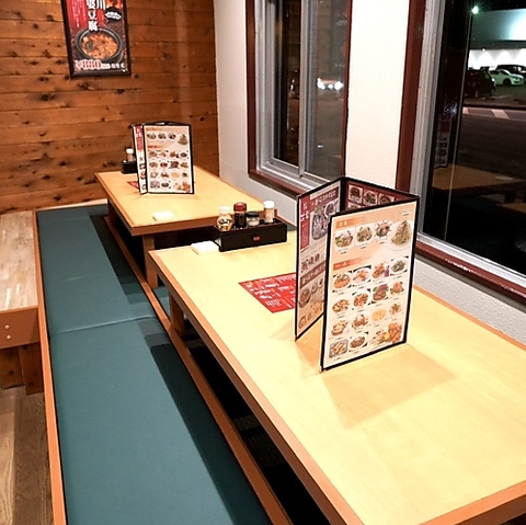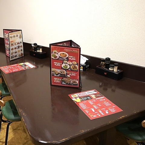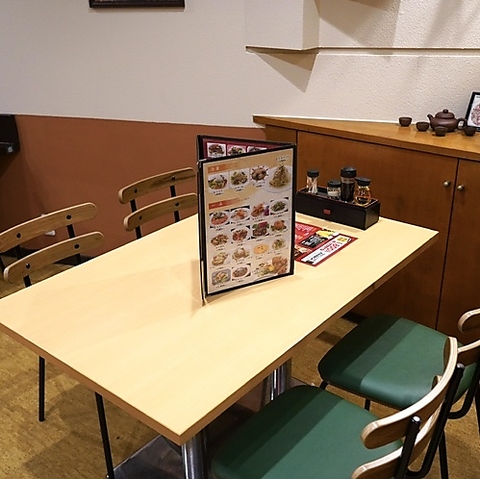 清潔感のあるシンプルなデザインの四人掛けテーブル席。座面が柔らかなクッションなので、快適な座り心地になっております♪全体的に温かみのある雰囲気を醸し出している店内は、友人や家族とともにリラックスした時間を過ごすのにぴったりな場所。家族の集まりや、買い物帰り、飲み会など、多様なシーンにお使いください!