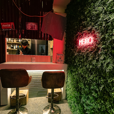 人目を気にせずゆったりと過ごせる、大人のための秘密基地のような隠れ家!薄暗い照明と柔らかなネオンの光が、極上のリラックス空間を演出します。カウンター席からソファー席までご用意。日常の喧騒を忘れ、特別な人と親密な時間を過ごしたい夜にぴったりです。非日常な雰囲気で素敵な夜をお過ごしください。