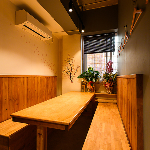 広々とした店内には、プライベートな時間を大切にできるテーブル席の個室を一部屋ご用意しております◎こちらは6名様までご利用いただけます。その他にも、ゆったりとお食事を楽しんでいただける4名掛けのテーブル席が3卓ございます。