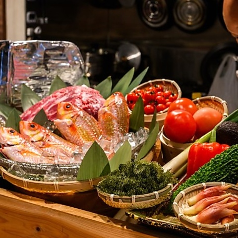 沖縄で「いまいゆ」と呼ばれるその日獲れたての新鮮なお魚を、カウンターで直接お選びいただけます♪職人が魚を捌き、部位ごとに最適な調理法でお仕立てしますので、一匹から2~3品もの多彩な味を楽しめる手軸イチオシの逸品です◎鮮度を重視するため、価格は時価とさせていただいております。
