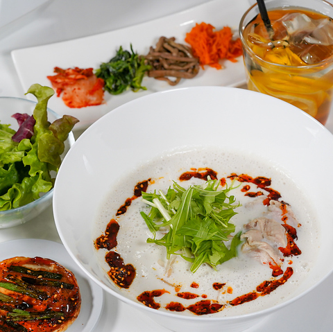 チキンラクサや冷麺、ヤンニョムチキン、石焼ビビンバ、スンドゥブなど、韓国の代表的な料理をランチセットで提供しています。全てのセットには、ドリンクと彩り豊かなサラダ・副菜4種が付いており、大変お得です。本格的な味を一度に堪能できるセットは、ご友人とのランチや自分へのご褒美に◎