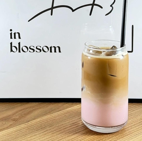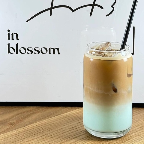 『in blossom』でしか味わえない!グラデーションが美しい「Pink Pink Pink ラテ」 や「Blue Blue Blueラテ」 は、ストロベリーや柑橘系のシロップをエスプレッソと合わせた特製ドリンクです。和テイストの「抹茶ストロベリーラテ」 も人気!キュートで写真映え抜群なオリジナルラテです♪