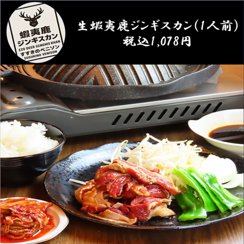 希少な蝦夷鹿ジンギスカン。北海道ならではの味わいを、柔らかく旨み濃厚な鹿肉で贅沢に楽しめます。