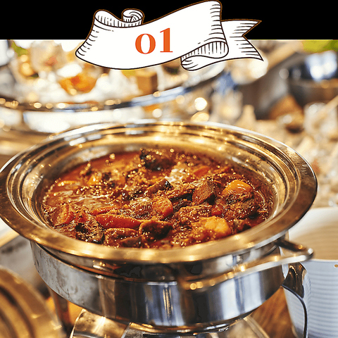 料理はスパニッシュやイタリアン、フレンチの各レストランの料理長も歴任した人物が監修します。欧州料理レストランを10年以上経営し、料理の研究をしてきたシェフ軍団が自信とプライドを持ってお作りした料理をご提供いたします。やわらかい肉質が特徴の特選牛肉のローストや季節のカルパッチョなど、厳選した高級食材も使用しています。