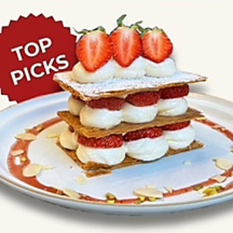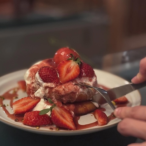 糸島産の新鮮なあまおうをふんだんに使用したスイーツが充実しています。特に、ふっくらもちもちのあまおうパンケーキは数量限定の人気メニュー!その他にも、季節限定のパフェやミルフィーユなど、見た目も華やかで美味しいいちごスイーツを多数取り揃えております。ぜひご賞味ください◎