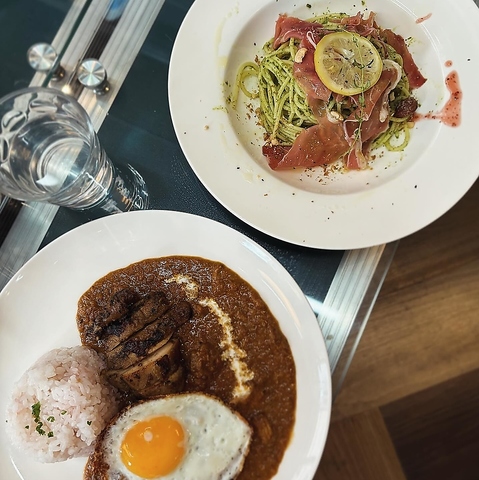 スイーツ以外にも、モーニングやランチに最適なフードメニューも豊富にご用意しています。自分好みにカスタムできるプレートメニューの他、生ハムのバジルパスタや、絶品ジャークチキンを乗せたあまおうスペシャルチキンカレーなど、いちごの新たな美味しさを発見できる創作料理が人気です。カフェ飯としてぜひご利用ください♪