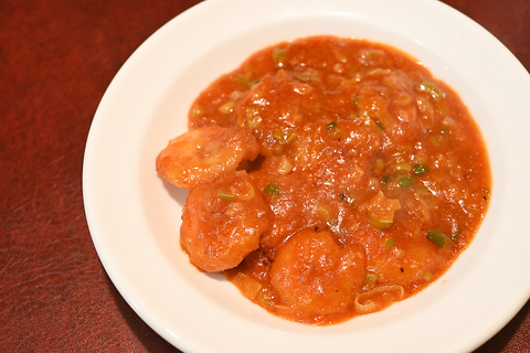 パラパラの黄金色に輝く、極上のエビチャーハン。強火の炎で一気に煽り、お米一粒一粒に卵の旨みを纏わせました。主役は、噛んだ瞬間に弾けるプリップリの大きな海老。香ばしい醤油の香りと、ネギの甘みが絶妙なアクセントとなり、最後の一口まで止まらない美味しさです。