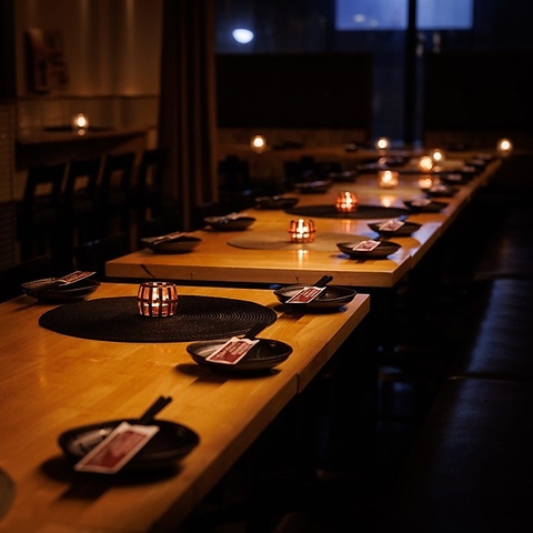 洗練されたモダンな空間が広がる当店は、全70席のゆったりとした店内に、2名様~ご利用いただける完全個室を完備。周囲を気にせず、プライベートな時間をお楽しみいただけます。大切なデートや記念日、接待や宴会など、あらゆるシーンに最適。落ち着いたインテリアと厳選された料理・ドリンクが、上質な時間を演出します。