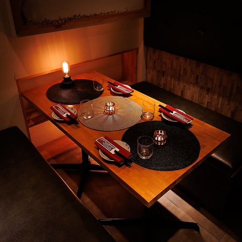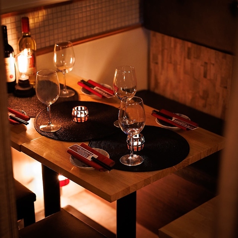 【2名様から個室をご用意】2名様用のカップルシートもご用意しております。デートや記念日などのプライベートシーンにおすすめ。もちろん、親しい友人とのサシ飲みにもお気軽にご利用ください。