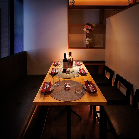 飲み会や宴会、接待、女子会、合コンなど各種宴会に最適な個室席をご用意しております。ゆったりと落ち着きある空間は、大人な雰囲気あるこだわりの個室空間です。