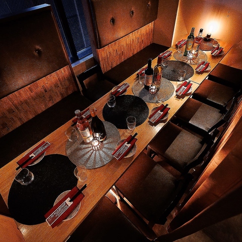洗練されたモダンなデザインと印象的な灯りが創り出す高級感あふれる個室が魅力の大人の隠れ家です。2名様からご利用いただける完全個室を完備しており、大切な人と過ごすデートや記念日、接待や会食など、あらゆるシーンに調和。サプライズも承りますので是非ご相談くださいませ。