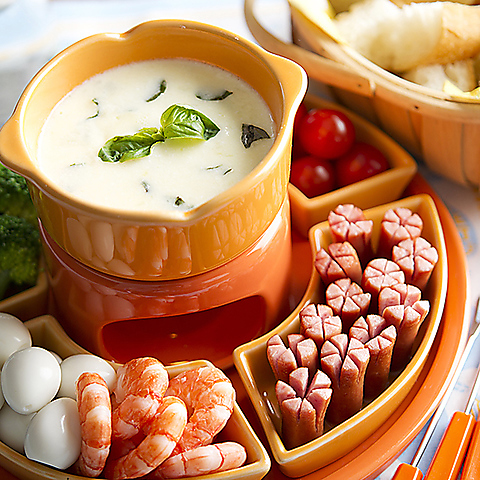 パンや野菜にあつあつとろとろのチーズをからめて食べるチーズフォンデュをメインにしたチーズフォンデュコースが当店の人気No.1!季節を問わず、女性やチーズ好きをトリコにしています。女子会では鉄板のコースです!