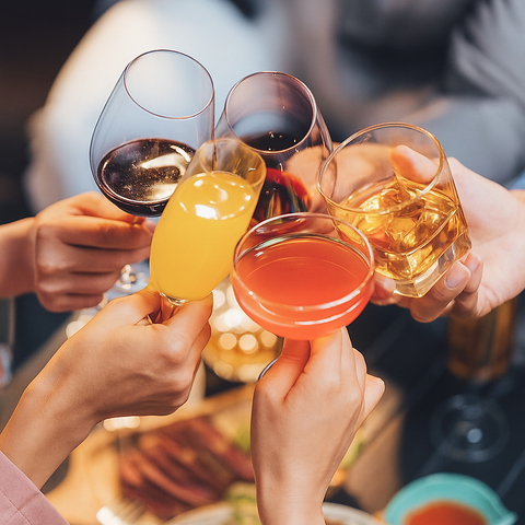 カクテルなどの定番メニューはもちろん、大人気のラッシーカクテル、澄みわたる葡萄酒、JIM BEAMなど90種以上が飲み放題♪
