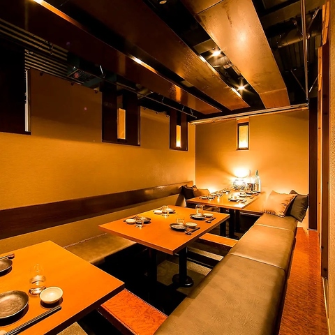2名様で利用できるコンパクトな個室から、10名以上の宴会に対応できる広めの部屋まで揃っており、さまざまなシーンで使いやすいと好評です。仕切りやレイアウトも柔軟に調整でき、会話に集中したい落ち着いた食事から、賑やかに楽しむ集まりまで幅広く対応。全席が個室のため、周囲の目を気にせず食事ができるのも嬉しいポイントです。