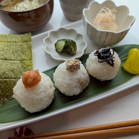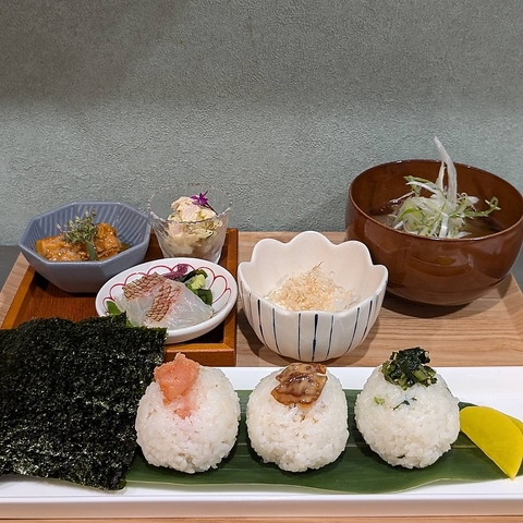 当店の美味しいがギュッと詰まった、贅沢でお得なランチの決定版です!メインのおむすびはお好きな種類を選べるのが嬉しいポイント。その他にも、自家製豆腐などがバランス良く入っており、様々な味を楽しめて満足すること間違いなしのボリューム。美味しい料理を少しずつ楽しみたい女性にも大人気です。