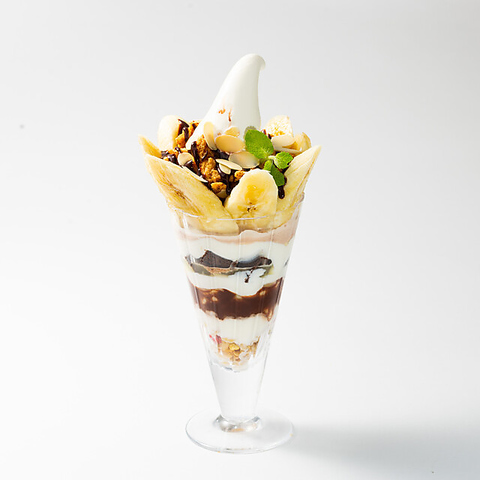 自家製のチョコレートと完熟バナナのパフェ