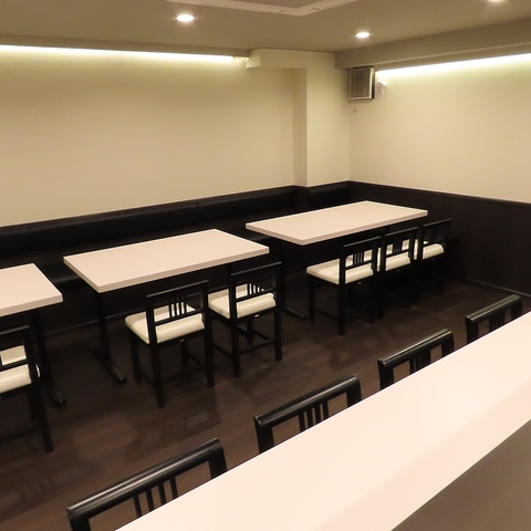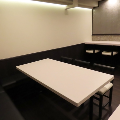 落ち着いた和モダン空間にあるテーブル席は、会社帰りの宴会や忘年会、女子会、記念日など、さまざまなシーンでご利用いただけます。ゆったりとした配置で、少人数の食事はもちろん、テーブルを組み合わせれば10名前後の団体利用も可能。シンプルで上質な雰囲気が、特別な時間をより華やかに演出します。