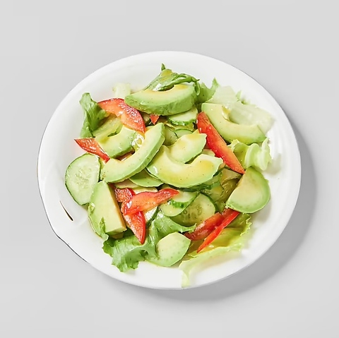 材料:アボカド、パプリカ、レタス、ピクルス、水菜、オリーブオイル、ヒマラヤ岩塩、黒コショウ、レモン、マスタード。