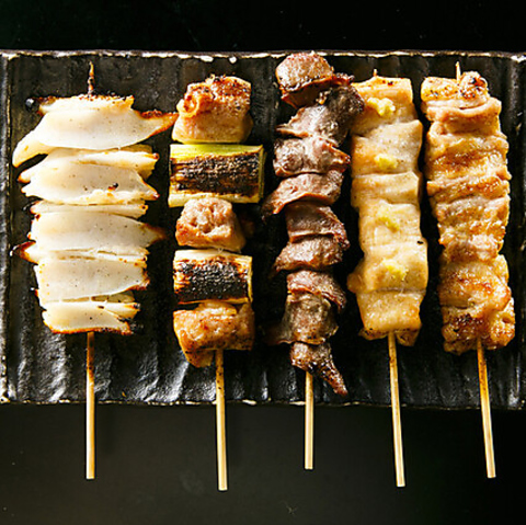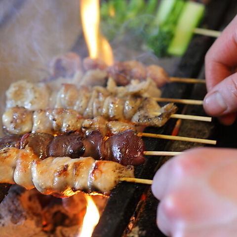 佐賀県三瀬村で生まれた『みつせ鶏』は、ほど良い弾力のある食感と豊かな風味が特長です。毎朝直送される新鮮な鶏肉を、職人が一本一本丁寧に串打ちし、炭火で香ばしく焼き上げます。お客様に熱々で香ばしい味わいを最後まで楽しんでいただけるよう、七輪に乗せてご提供◎絶品の串焼きは多彩な部位をご用意しております!