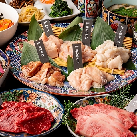 当店のプランは、ホルモンから豚・鶏焼肉、定番のおつまみや野菜焼、スープ、ご飯物まで幅広く揃えた満足内容です。塩・辛味噌ホルモンや牛ハツなどの人気部位に加え、豚トロや鶏皮焼など多彩な味わいを楽しめます。キムチやナムル、焼き野菜で箸休めもしやすく、バランス良く焼肉を味わえるプランです。