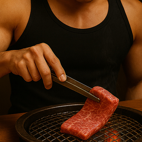 エプロン姿のマッチョスタッフが店内を盛り上げる、新感覚の焼肉空間。ここでしか体験できない臨場感と一体感が魅力。
